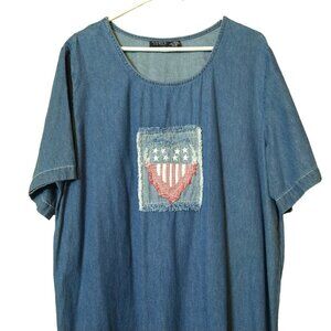 - NAQUI WOMEN'S 24W SHORT SLEEVE JEAN DRESS EMBROIDERED VINTAGE Heart Patriotic
