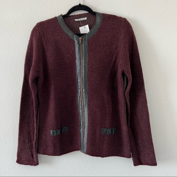 NARA CAMICIE Cardigan Sz M/L Wool Blend Burgundy Zip Closure False pockets New