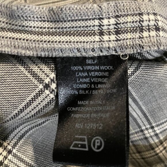 NARCISO RODRIGUEZ GRAY AND WHITE PLAID PANTS - Made in Italy- IT 40- wide dark gray and white plaid, flat front, front zip and hook and bar closure, , wide leg, high rise, 100% virgin wool, unlined - Waist 30", Hips 38", Length 45" PRISTINE - TAGS ON (these look like a black and white plaid next to black and gray next to gray...works with either