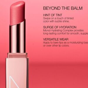 NARS lip balm offers a sheer pink hue with a touch of golden shimmer. Ideal for a subtle, elegant look.