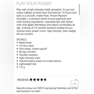 “HIGH-INTENSITY MATTE FORMULA THAT GLIDES ON BOLD COLOR WITH 10-HOUR WEAR”