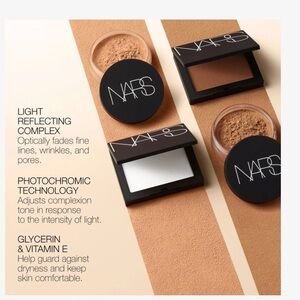 NARS translucent setting powder in a sleek black container. Perfect for a flawless finish.
