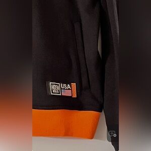 Design: The jacket features a full-zip closure, a mock neck and reflective, orange hem
