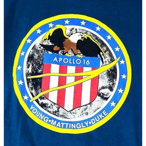 NASA Apollo 16 Mission Crew Badge Logo T-Shirt Men's Small Dark-Teal (T5E)