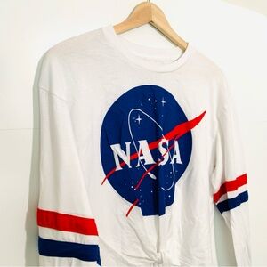 NASA Buzz Aldrin Women's White Long Sleeve T-Shirt Front Tie Size XL