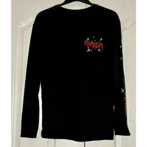 NASA Logo Black Men’s Large Long Sleeve T-Shirt Printed Sleeve Authentic NASA