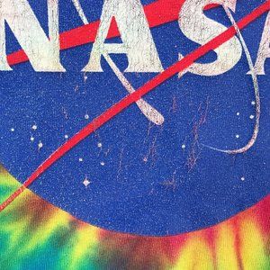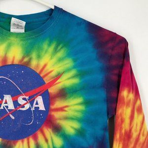 NASA Mens Shirt Medium Red Rainbow Tie Dye Long Sleeve Pullover Spiral Space