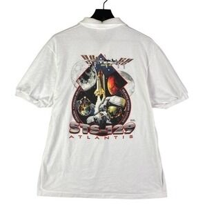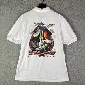 NASA STS-129 Atlantis Space Shuttle Shirt Collared Mens Size Large Graphic White