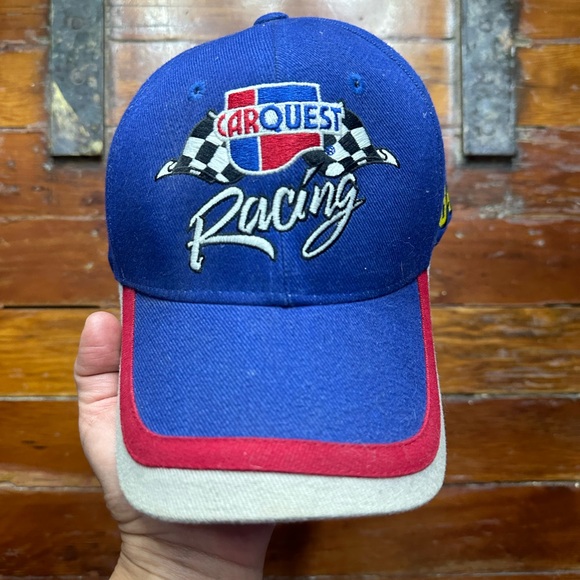 Stylish blue cap with Carquest Racing logo. Features red and gray accents. All sales final on this account.