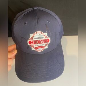Stylish navy cap featuring a NASCAR Chicago Street Race logo. Perfect for racing fans.
