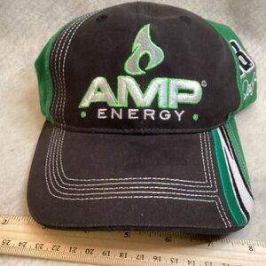 This NASCAR-branded hat features the iconic Amp Energy logo and Dale Earnhardt Jr.'s signature, offering fans a stylish way to support their favorite driver.