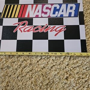 Enhance your space with this NASCAR Racing wall decor. Featuring a classic black and white checkered pattern, it's perfect for any racing enthusiast. The bold red and blue accents add a vibrant touch to your decor.