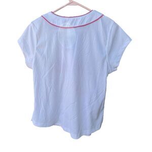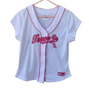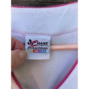 NASCAR size L Truex Jr button front jersey. Perforated fabric with embroidered logos. Side slits at bottom. Pit to pit 21” and length 23”.