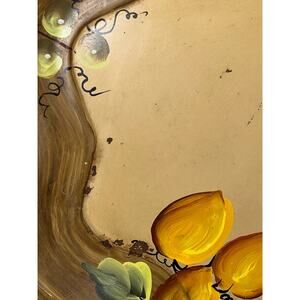 Vintage hand-painted toleware tray featuring a fruit and floral motif.