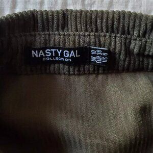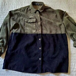 NASTY GAL CORDUROY SHIRT SIZE 6 LONG SLEEVES OLIVE GREEN & BLACK BUTTON POCKET