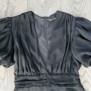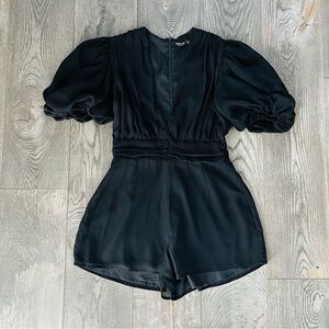 NASTY GAL Deep V Neck Puff Sleeve Black Shorts Romper Size 6