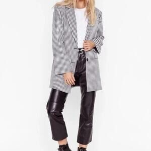 NASTY GAL Dog Days Oversized Black & White Houndstooth Blazer Size 14