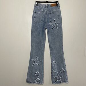 NASTY GAL Flared Jeans Womens 4 High Rise Distressed Applique Stars Festival