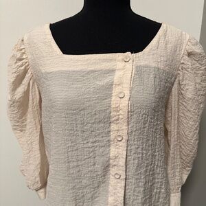 *NASTY GAL* Ivory Asymmetrical Button Down Blouse Size 8