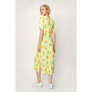 NASTY GAL Orange Print Slip Midi Dress Sz 14 NEW