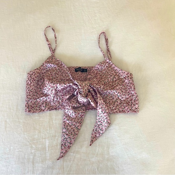 Crop top ties in front w/adjustable straps