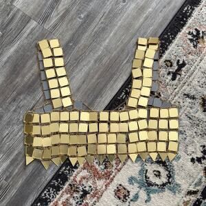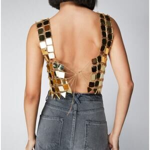 NASTY GAL Square Disc Chainmail Cami Top Gold