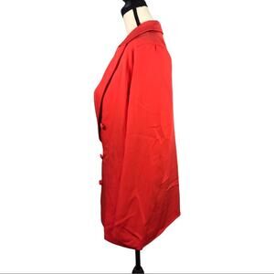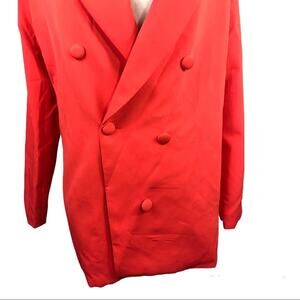 This bright blood Orange blazer features a oversized, longline silhouette, notched lapels, and double breasted button closure.