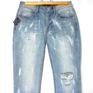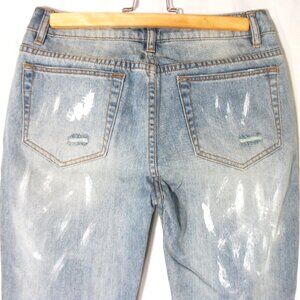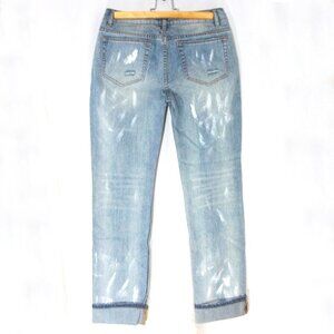 NASTY GAL Women High Rise Button Fly Distressed Cuffed Boyfriend JEANS Pants 26