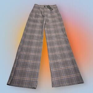 NASTY GAL Women’s Small Long Pink Check Flare Pant