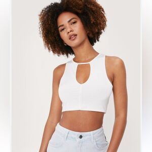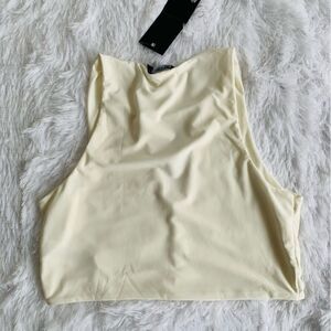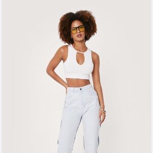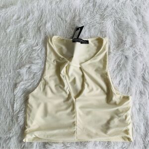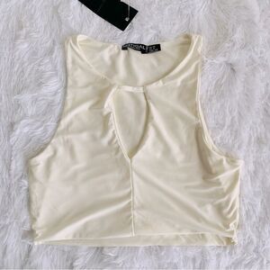 NASTY GAL Keyhole Chest Crop Top Cream 8