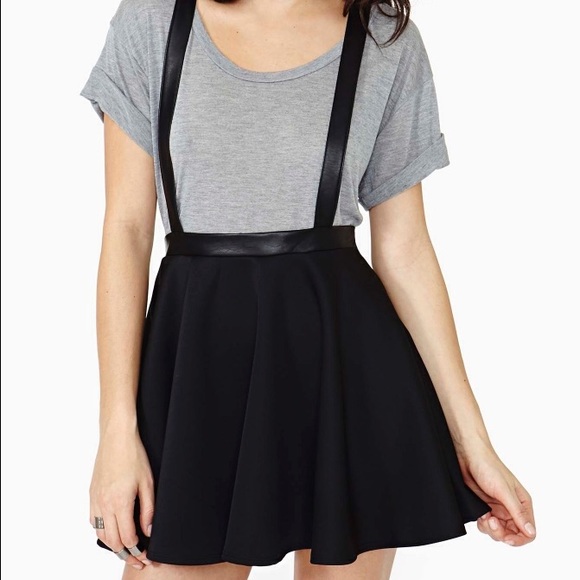 made by nastygal, tags say s but would best fit a medium-s large. i perfect condition and only worn once. has adjustable suspenders!