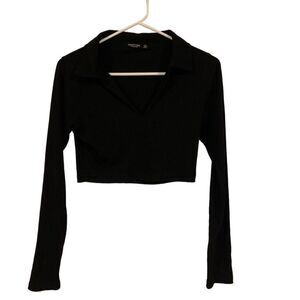 NASTY Gal Size‎ 6 Crop Collared Long Sleeve Ribbed Top