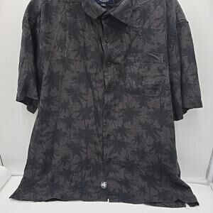 NAT NAST Mens Luxury Shirt XL-Large Black Tropical Relaxed Geometric Silk Blend