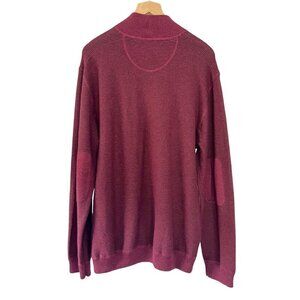 Nat Nast men's burgundy (Zinfandel Combo) ribbed 1/4 zip pullover sweater complete with elbow patches. Sweater is made of a cotton, nylon, cashmere blend and is a man's size large American Fit.
