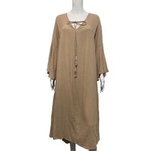 NATALIE MARTIN Beige Cotton Sand Gauze Oversized Fernanda Midi Dress Size XS