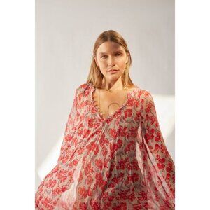 💕NATALIE MARTIN💕 Fiore Maxi Dress ~ Chiffon Watercolor Dove Medium M NWT
