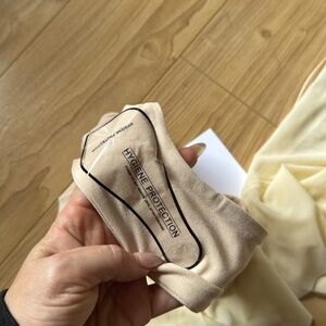 Elegant cream dress with matching tan bottoms. Perfect for a stylish look.