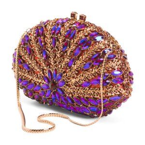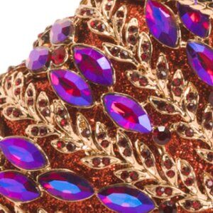metallic accents, detachable chain shoulder strap, floral design, glass stone embellished, gift box included