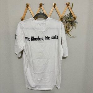 NATASHA ZINKO T-Shirt White Short Sleeve Tee ISL Hic Rhodus, Hic Salta Size Lg
