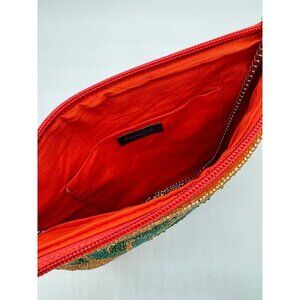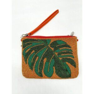 NATASHA beaded palm tree clutch wristlet shoulder bag - Orange/Green