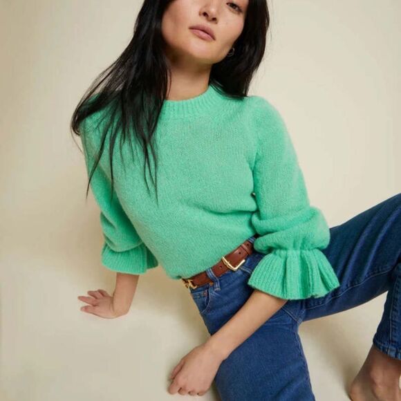 Alpaca sweater perfect for a girly statement sweater kind of day (AKA every day). Elastic at wrist. (This one comes in Grasshopper.)