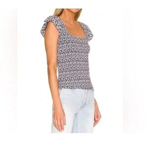 NATION LTD Alicia Smocked Ruffle Tank Top BluebellFloral Print Size Small
