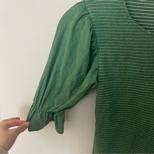 NATION LTD Bardot Gathered Sleeve Tee In Fern Green Smocked Size Small