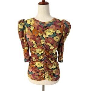 NATION LTD Floral Puff‑Sleeve Shirred Pima Cotton Floral Top Women’s Size Large