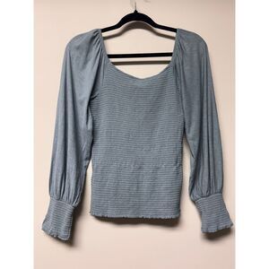 NATION LTD Iona Smocked Long Sleeve Blouse Top Dusty Blue, Sz L