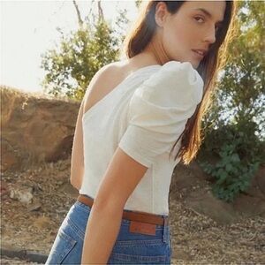 NATION LTD KIRSTIE Pima Cotton ONE SHOULDER top in Off white women’s size XS