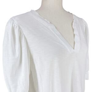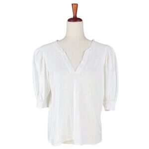 NATION LTD Lou Peasant Top 100% Pima Cotton Puff Sleeve V-Neck Tee White Size L