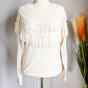 NATION LTD, New Kiki Fringed Ivory V-back Alpaca Oversized Sweater Size Small