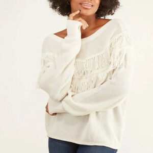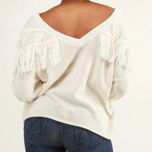 NATION LTD, NWT, Kiki Fringed Ivory V-back Soft Alpaca Oversized Sweater, Size Small
