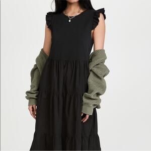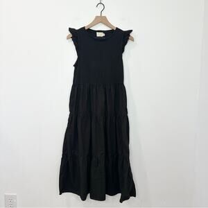 NATION LTD Sissy Ruffled Black Dress Tiered Midi Sundress size Small